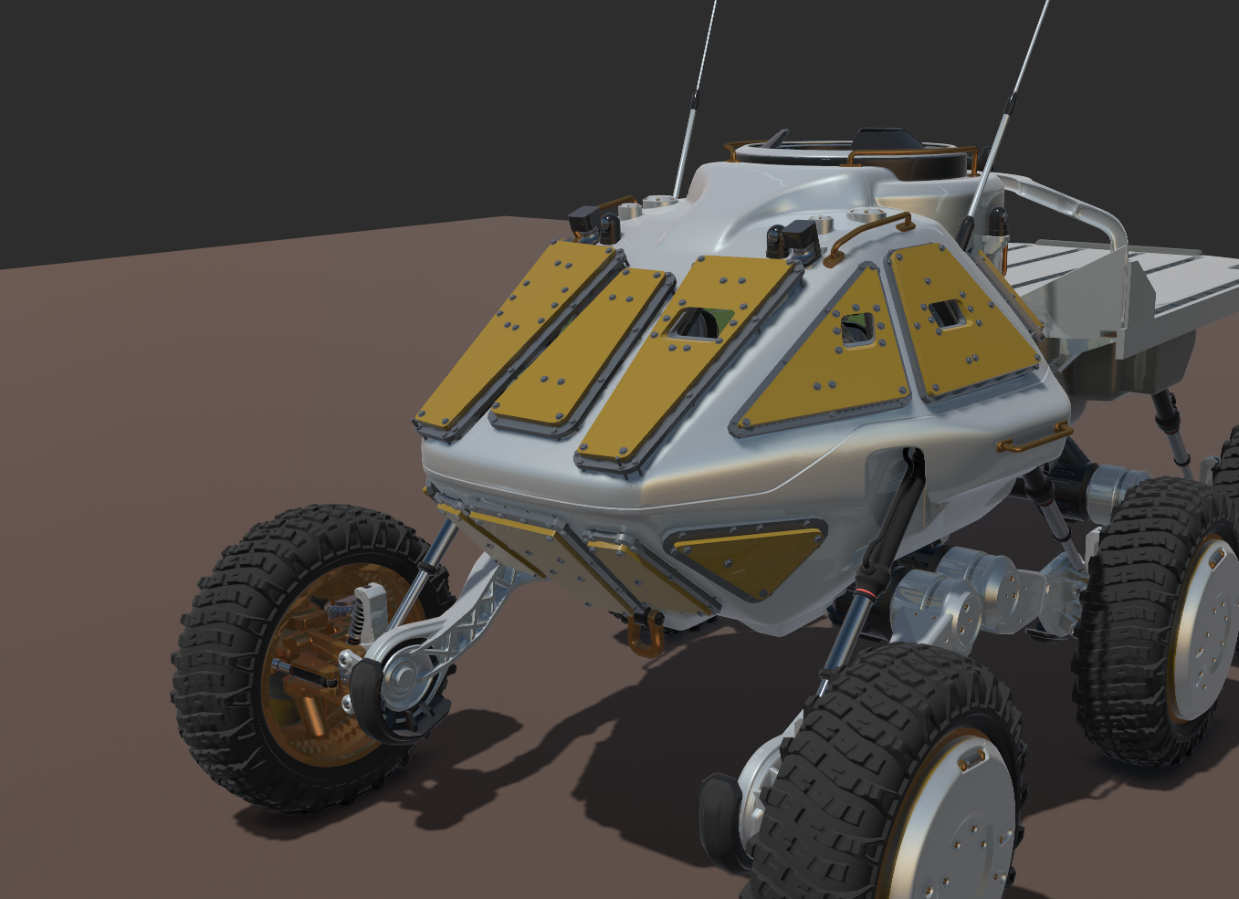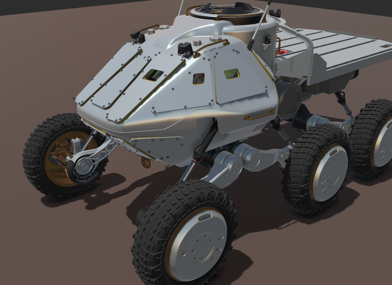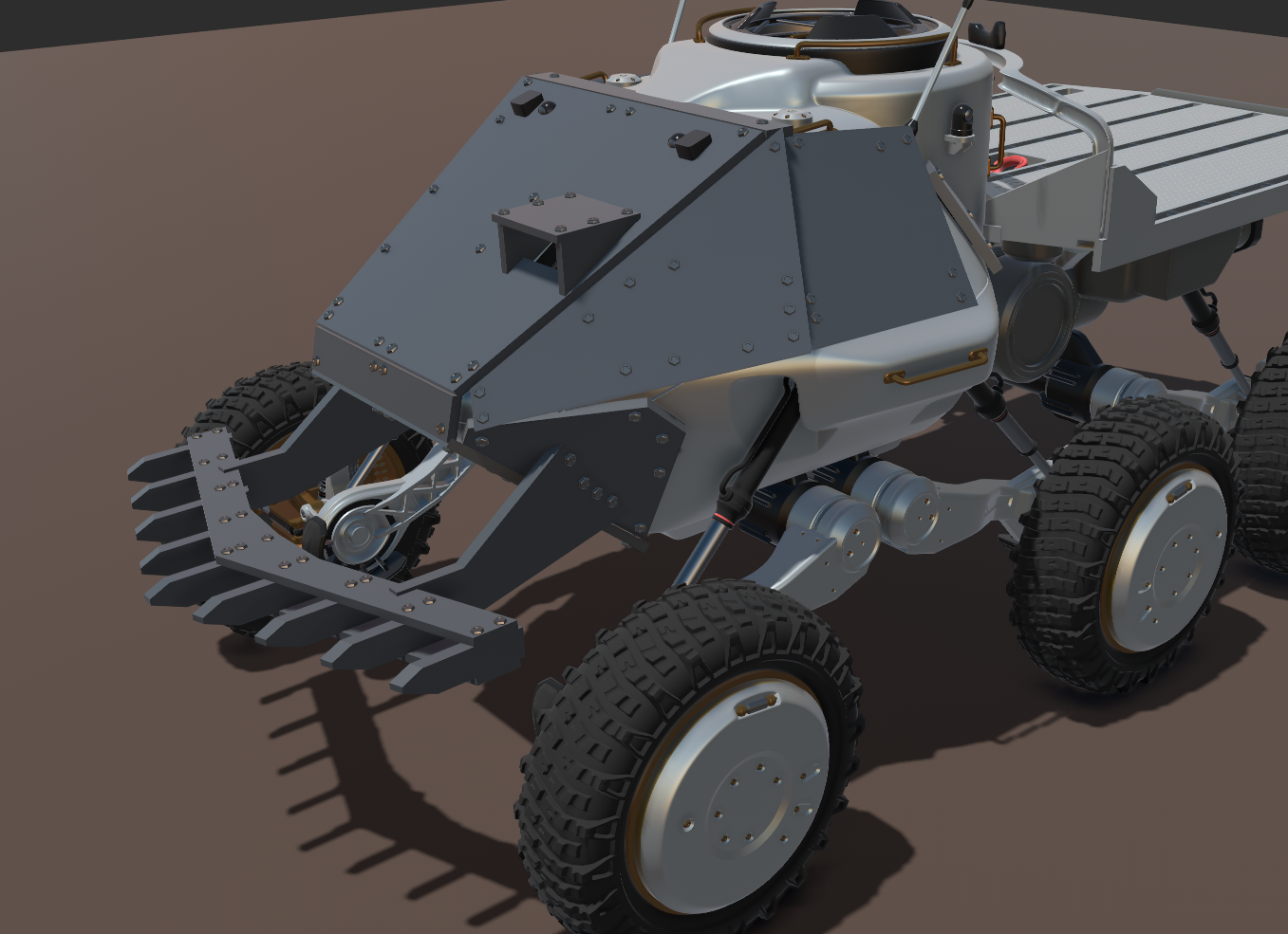 Some earlier progress design work. Intial retro-future Rover shapes. On the moon as intended. Some NASA-inspired reinforcements. Huge articulation on the suspension to allow for the Hex breach scene, where the rover was originally going to be sucked in ‘belly first’.